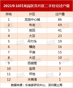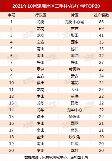 以下是10月深圳83个片区二手住宅成交详情: