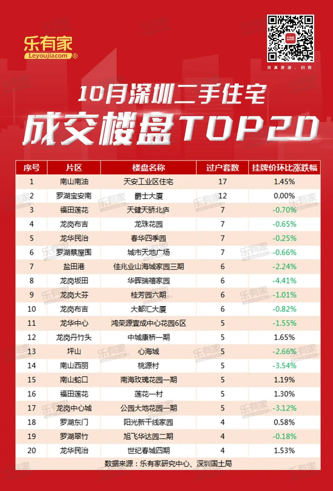 近期各地政府及机构救市动作频频,市场现回暖之意,看房活跃度也有所上涨。乐有家研究中心特意盘点了最新的深圳二手楼盘成交榜单,以及83个片区的成交火热度,以供购房者作为置业参考。